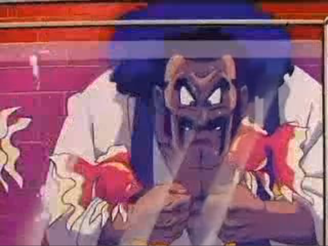 Cuando el General Blue fue a la Villa Pinguino unos niños y Gamera una tortuga de burlaban de el.
