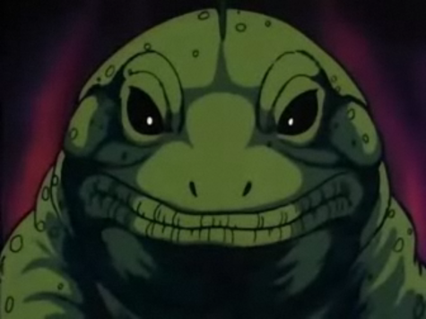 Una rana es vista por primera vez en el episodio de Dragon Ball " Cuidado con Launch ". Más tarde, después de su primera batalla contra Tambourine, Goku se despierta en las Praderas de Yajirobe con una rana lamiendo la nariz.